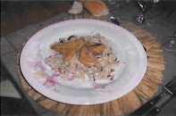 Risotto à la truffe noire : ( pour 10 personnes ) 500g de riz ( arborio ), 1 litre et demi de bouillon de volaille, 1 gros oignon ou 2 à 5 échalottes, 1 verre de vin blanc sec, beurre ou crème fraiche ( 100g ) parfumés à la truffe et contenant 30g de truffe au minimum coupée en copeaux ou lamelles et avec le jus de truffe si conserve.